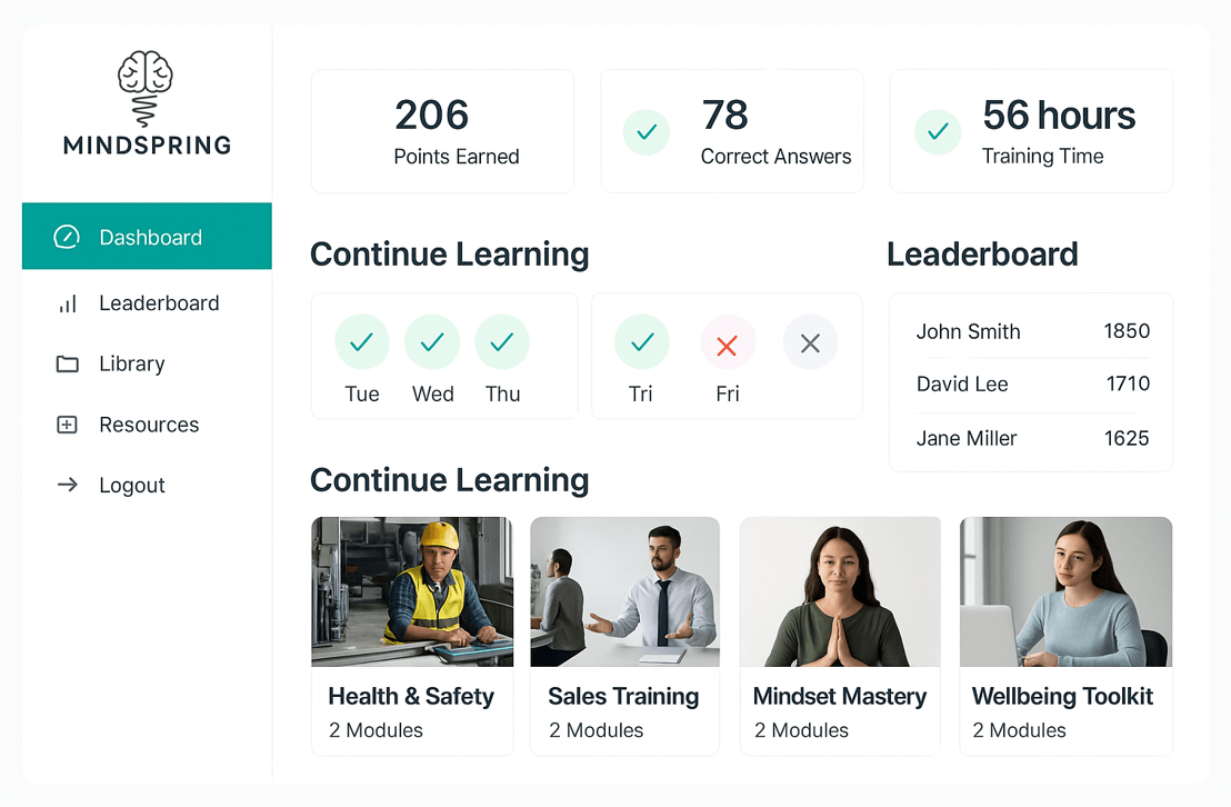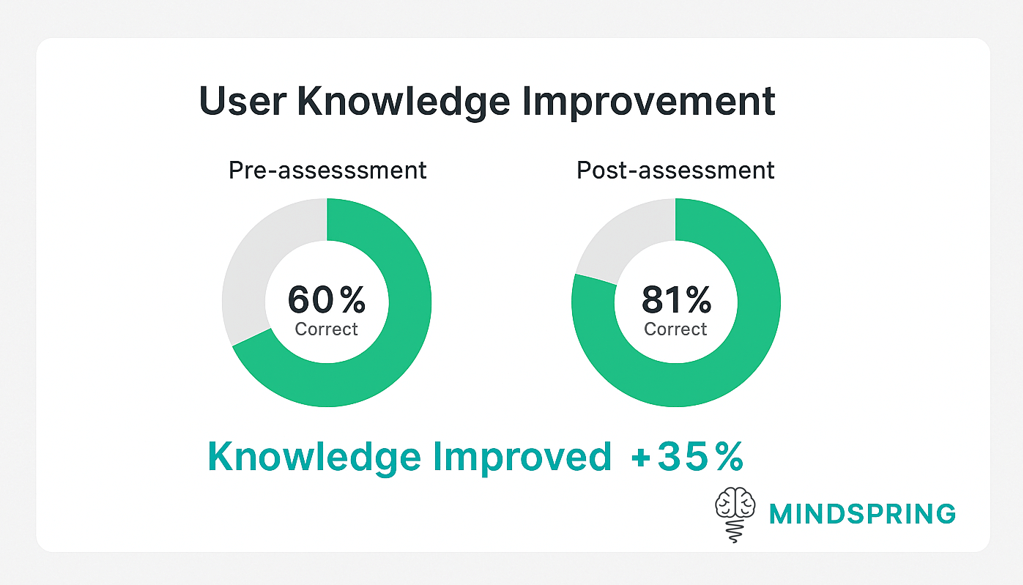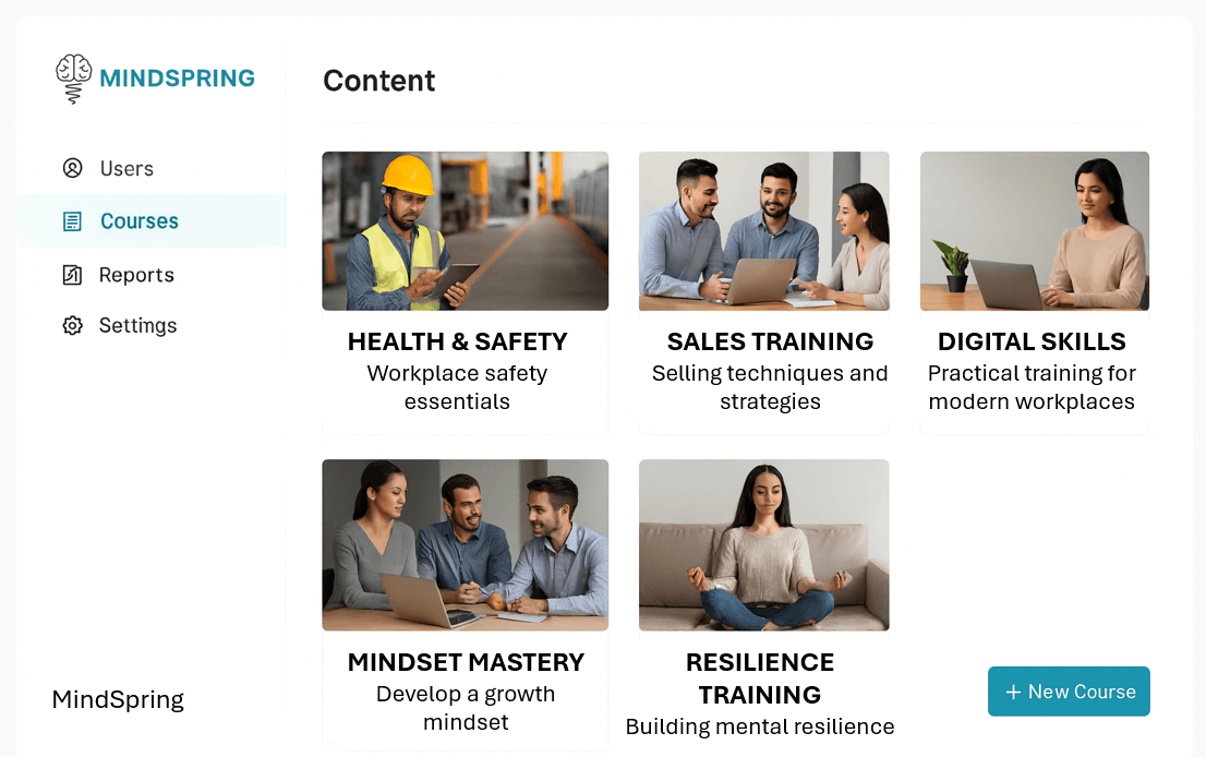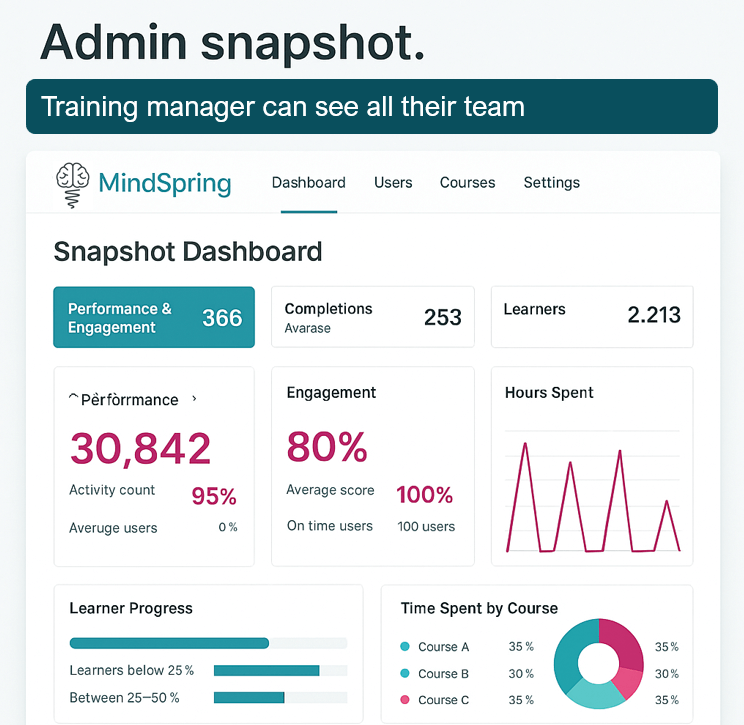 With MindSpring, Admin and learners can see their progress with easy to see analytics and reports.